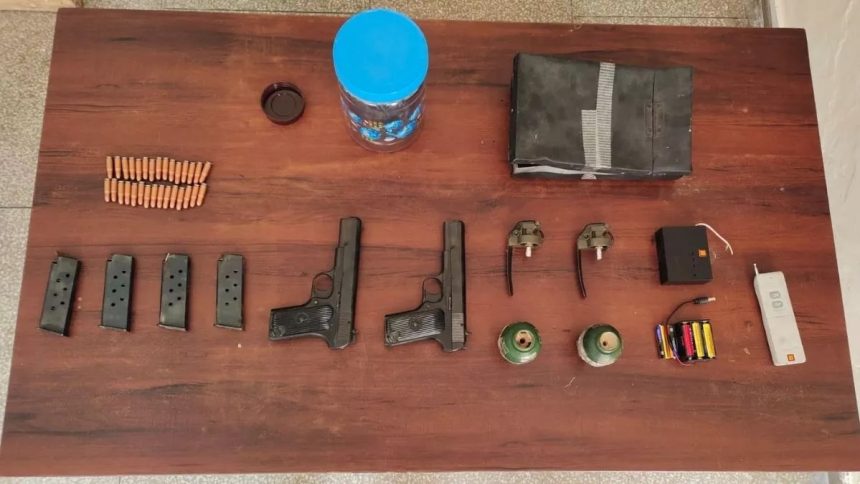 अमृतसर (नेहा): भारत-पाकिस्तान युद्ध के बीच दूसरे दिन भी बीएसएफ और पंजाब पुलिस के जवानों ने तलाशी के दौरान खेत से विस्फोटक पदार्थ बरामद किए हैं। अजनाला सेक्टर के चक बाला गांव के खेतों से हथियारों की इस खेप में 972 ग्राम आरडीएक्स, दो हैंड ग्रेनेड, दो डेटोनेटर, आईईडी तैयार करने में इस्तेमाल होने वाले दो डेटोनेटर, रिमोट कंट्रोल, चार्जर, आठ बैटरी, काले रंग का बॉक्स इत्यादि बरामद किया गया है। इसके साथ ही दो पिस्तौल, तीस कारतूस, चार मैगजीन भी आरोपितों ने ड्रोन के जरिए भारतीय हद में गिराए थे। जिसे सुरक्षा एजेंसियों ने कब्जे में ले लिया है।