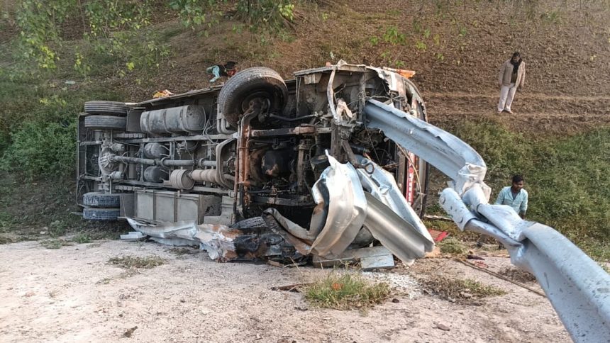 Nrirashtriya > Blog > national news > पटना-मोकामा फोरलेन पर बस खाई में गिरी, महिला की मौत, 25 यात्री घायल
