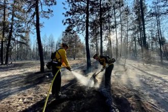 दक्षिणी ओरेगन के निकट दुनिया के सबसे ऊंचे वृक्षों में से एक में लगी आग