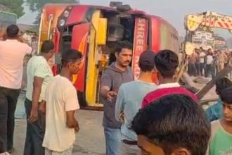 जयपुर से मधुबनी जा रही बस पलटी