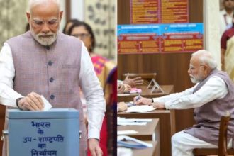 मंगलवार को 15वें उपराष्ट्रपति चुनाव में अपना वोट डालने के बाद, प्रधानमंत्री…