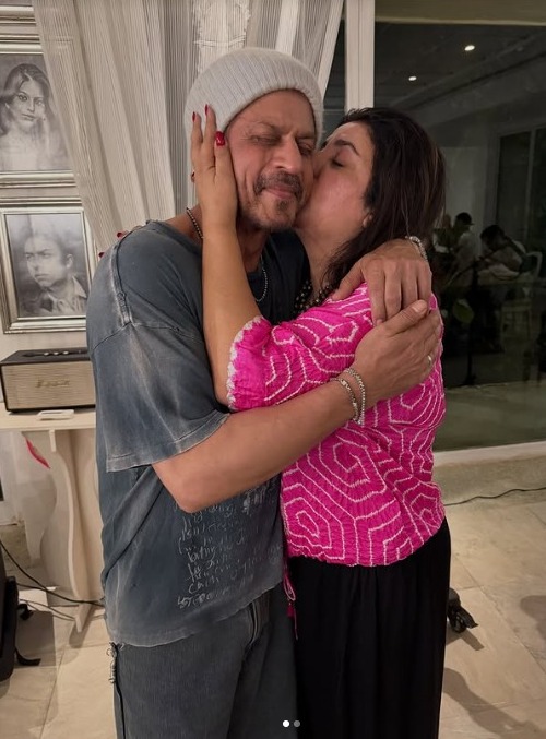 फराह खान ने इंस्टाग्राम हैंडल पर शाहरुख खान के साथ अपनी तस्वीरें पोस्ट करते हुए उन्हें जन्मदिन की शुभकामनाएं दीं। एक तस्वीर में फराह को किंग खान को गले लगाते हुए देखा जा सकता है, जबकि दूसरी में वह उनके गाल पर किस देती नजर आ रही हैं। तस्वीरें पोस्ट करते हुए फराह खान ने कैप्शन में लिखा, ‘हैप्पी बर्थडे किंग शाहरुख खान, अगले 100 सालों तक यूं ही राज करते रहो’।