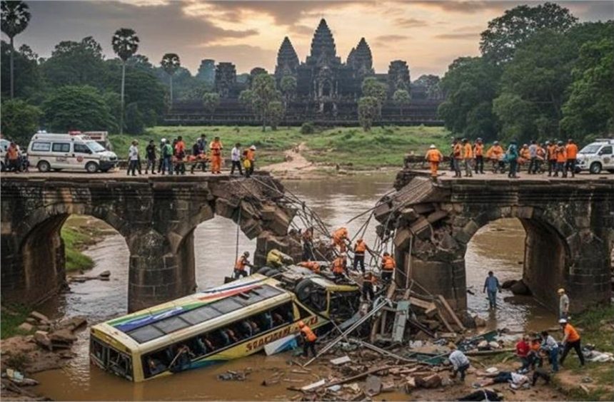 कंबोडिया (पायल): कंबोडिया में एक यात्री बस पुल से नदी में जा गिरी। इस दुर्घटना में कम से कम 16 लोग मारे गए और दो दर्जन से अधिक घायल हुए हैं। पुलिस अधिकारी सिव सोवन्ना ने ‘एसोसिएटेड प्रेस’ को फोन पर बताया कि यह बस सियेम रीप से नोम पेन्ह की ओर जा रही थी, जहां प्रसिद्ध अंगकोर वाट मंदिर स्थित है। यह हादसा बृहस्पतिवार सुबह मध्य प्रांत काम्पोंग थॉम में हुआ।