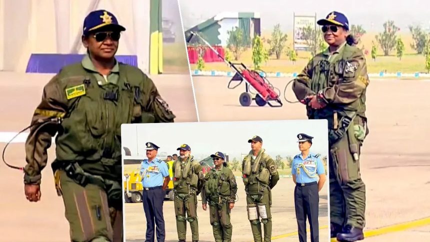 नई दिल्ली (नेहा): राष्ट्रपति द्रौपदी मुर्मू ने आज (29 अक्टूबर 2025) को अंबाला एयरफोर्स स्टेशन से लड़ाकू विमान राफेल में उड़ान भरी है। राफेल में उड़ान से पहले उन्होंने बाकायदा फाइटर प्लेट सूट पहना। इसके बाद अधिकारियों से मुलाकात भी की, राष्ट्रपति की इस उड़ान को देखते हुए सुरक्षा के खास इंतजाम किए गए। यही वजह है कि एयरफोर्स स्टेशन के आसपास ड्रोन उड़ाने पर पाबंदी लगाई गई है।