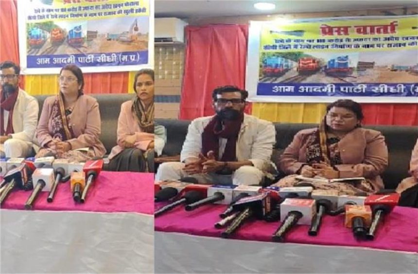 सीधी (पायल): सीधी जिले में रेलवे निर्माण कार्य को लेकर एक बड़ा आरोप सामने आया है। आम आदमी पार्टी (आप) के प्रदेश सचिव रामचरण सोनी और प्रदेश अध्यक्ष एवं सिंगरौली की महापौर रानी अग्रवाल ने सोमवार को सीधी शहर स्थित मधुसूदन पैलेस में प्रेस कॉन्फ्रेंस कर रेलवे ठेकेदारों, अधिकारियों और जिला प्रशासन पर गंभीर आरोप लगाए।