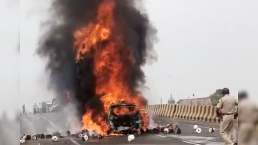 बीकानेर (नेहा): राजस्थान के बीकानेर में एक ट्रक और कार की जोरदार टक्कर हो गई। हादसा इतना भयानक था कि कुछ ही सेकेंड में कार आग के गोले में तब्दील हो गई। इस घटना में 2 लोग बुरी तरह से झुलस गए और अस्पताल में इलाज के दौरान उन्होंने दम तोड़ दिया। घटना बीकानेर के रायसर स्थित भारत माला रोड की है। आज सुबह एक ट्रक ने कार को टक्कर मार दी, जिससे कार में आग लग गई।