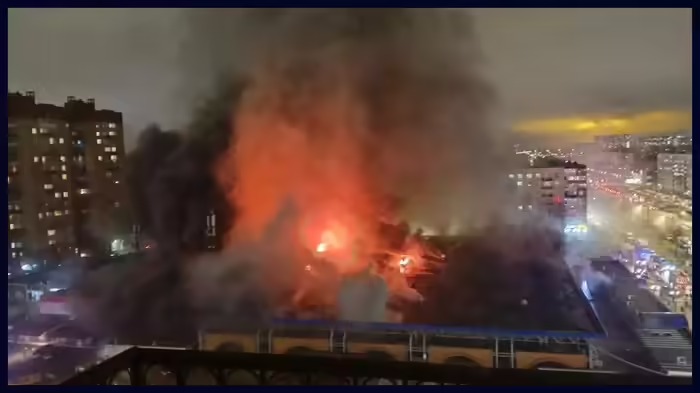 मॉस्को (नेहा): रूस के सेंट पीटर्सबर्ग शहर के सबसे बड़े बाजार में से एक में बुधवार शाम को भीषण आग लग गई। रूस के आपातकालीन स्थिति मंत्रालय ने बताया कि बुधवार रात नेवस्की जिले में एक बाजार की इमारत में आ लग गई। आग से एक व्यक्ति की मौत की जानकारी सामने आई है। रूसी मीडिया ने चश्मदीदों के हवाले से बताया कि घटनास्थल पर कई धमाकों की आवाज सुनाई दी। पूरा मार्केट कॉम्प्लेक्स आग की लपटों में घिर गया था। अभी तक आग लगने के कारणों का पता नहीं चला है। घटनास्थल से मिले वीडियो शहर के ऊपर तेज आग की लपटें और धुएं के घने बादल उठते दिख रहे हैं।