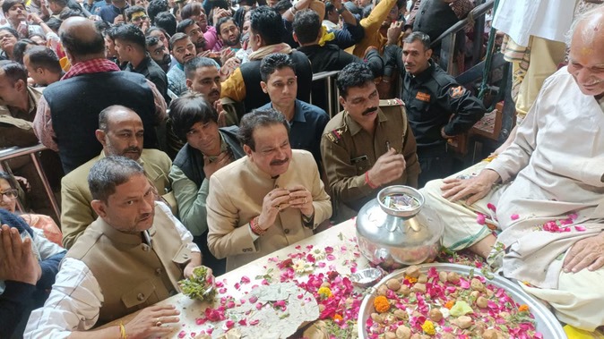 पटना (नेहा): केंद्रीय राज्य मंत्री एसपी सिंह बघेल ने ठाकुर बांकेबिहारी मंदिर में ठाकुरजी के दर्शन कर पूजा अर्चना की। मंदिर के सेवायत गोस्वामियों ने मंत्रोच्चार के मध्य ठाकुरजी का पूजन कराया और प्रसादी पटुका, माला और प्रसाद दिया।