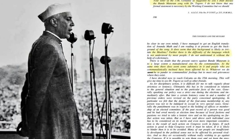 बीजेपी के प्रवक्ता सीआर केसवन ने शुक्रवार को सोशल मीडिया प्लेटफॉर्म एक्स पर एक पोस्ट में पूर्व पीएम नेहरू की आलोचना की और सितंबर और अक्टूबर 1937 में नेताजी सुभाष बोस को लिखे गए पत्र साझा किए। उन्होंने अपनी पोस्ट में लिखा कि हमारी युवा पीढ़ी के लिए यह जानना जरूरी है कि कैसे नेहरू की अध्यक्षता में कांग्रेस पार्टी ने अपने सांप्रदायिक एजेंडे को बेशर्मी से आगे बढ़ाते हुए, 1937 के फैजपुर अधिवेशन में पार्टी के राष्ट्रगीत के रूप में केवल एक संक्षिप्त वंदे मातरम को अपनाया।