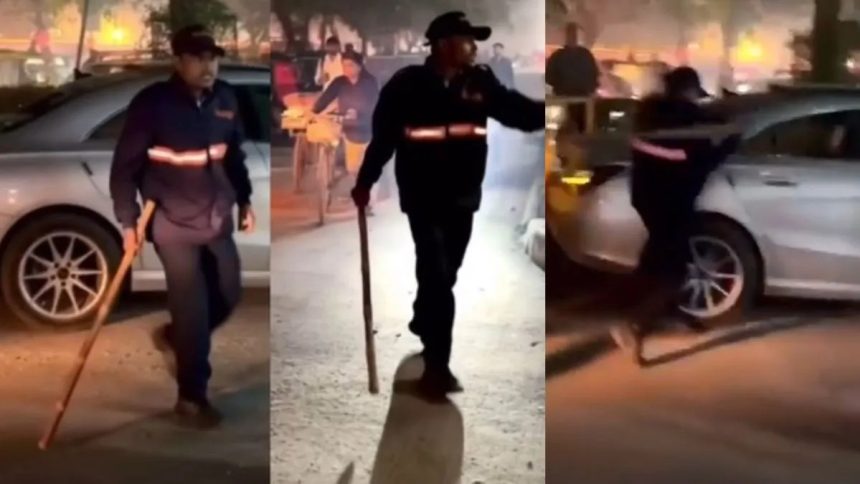 गुरुग्राम (नेहा): गुरुग्राम के सेक्टर 31 स्थित साइबर पार्क में गुरुवार देर रात मर्सिडीज कार सवार कपल और सुरक्षाकर्मियों के बीच झगड़ा हो गया। झड़प इतनी बढ़ गई कि दोनों पक्षों से मारपीट हुई, लाठी-डंडे चले और अंत में सुरक्षाकर्मियों ने कार के शीशे तोड़ दिए। घटना का एक वीडियो सोशल मीडिया पर वायरल हो रहा है, जिसमें गार्ड सुरक्षाकर्मी कार को तोड़ते नजर आ रहे हैं।