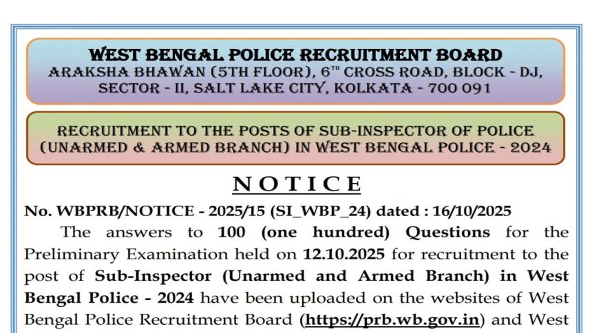 WB Police SI उत्तर कुंजी अब ऑनलाइन, तुरंत करें डाउनलोड और मिलाएं अपने जवाब!