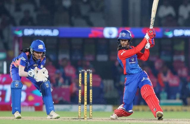 नई दिल्ली (नेहा): वीमेंस प्रीमियर लीग 2026 में दिल्ली कैपिटल्स ने प्लेऑफ की दौड़ में खुद को बनाए रखते हुए मुंबई इंडियंस पर सात विकेट की अहम जीत दर्ज की। मुश्किल पिच पर 155 रन के लक्ष्य का पीछा करते हुए जेमिमा रोड्रिग्स ने संयम और समझदारी भरी नाबाद पारी खेली और दिल्ली को एक ओवर शेष रहते जीत दिला दी। धीमी पिच पर पहले बल्लेबाजी करने उतरी मुंबई इंडियंस एक बार फिर पावरप्ले में लड़खड़ा गई। हालांकि नेट साइवर-ब्रंट ने शानदार बल्लेबाजी करते हुए 45 गेंदों पर नाबाद 66 रन बनाए और टीम को 20 ओवर में 154/5 तक पहुंचाया। दिल्ली की ओर से गेंदबाजी में मारिज़ान काप्प सबसे प्रभावी रहीं, जिन्होंने चार ओवर में सिर्फ आठ रन देकर हेले मैथ्यूज़ का अहम विकेट भी झटका।